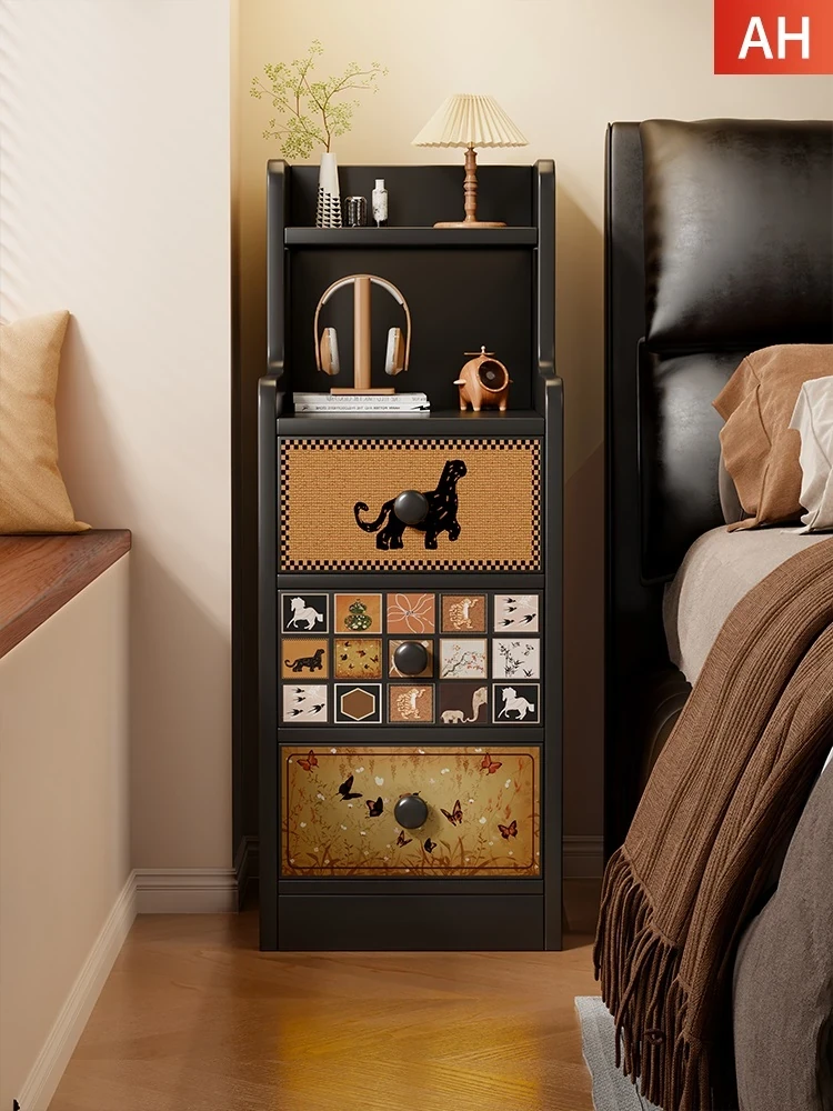 シンプルでモダンなベッドサイドキャビネット - 小型の寝室用多層収納ラック、スリムなデザインでお菓子や本もスッキリ整理!あなたの部屋をスタイリッシュに演出します。