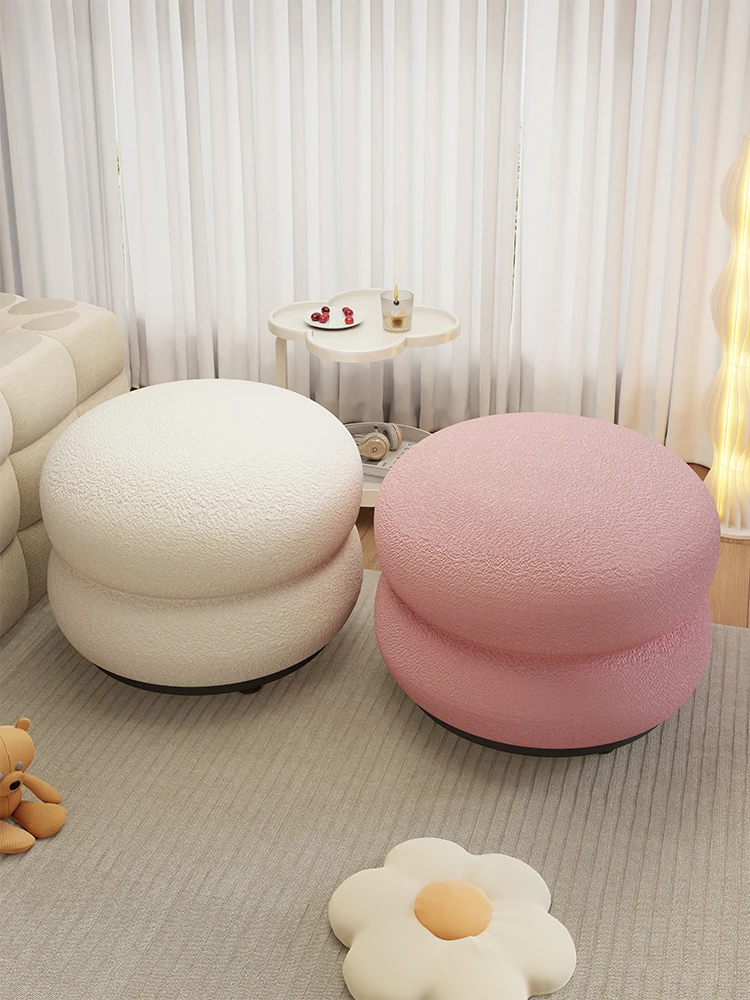 Modern Minimalist Footstool & Ottoman for Living Room - Versatile Shoe Bench, Coffee Table, and Soft Cushion Chair for Home Use - Stylish Round Stool for Comfortable Seating