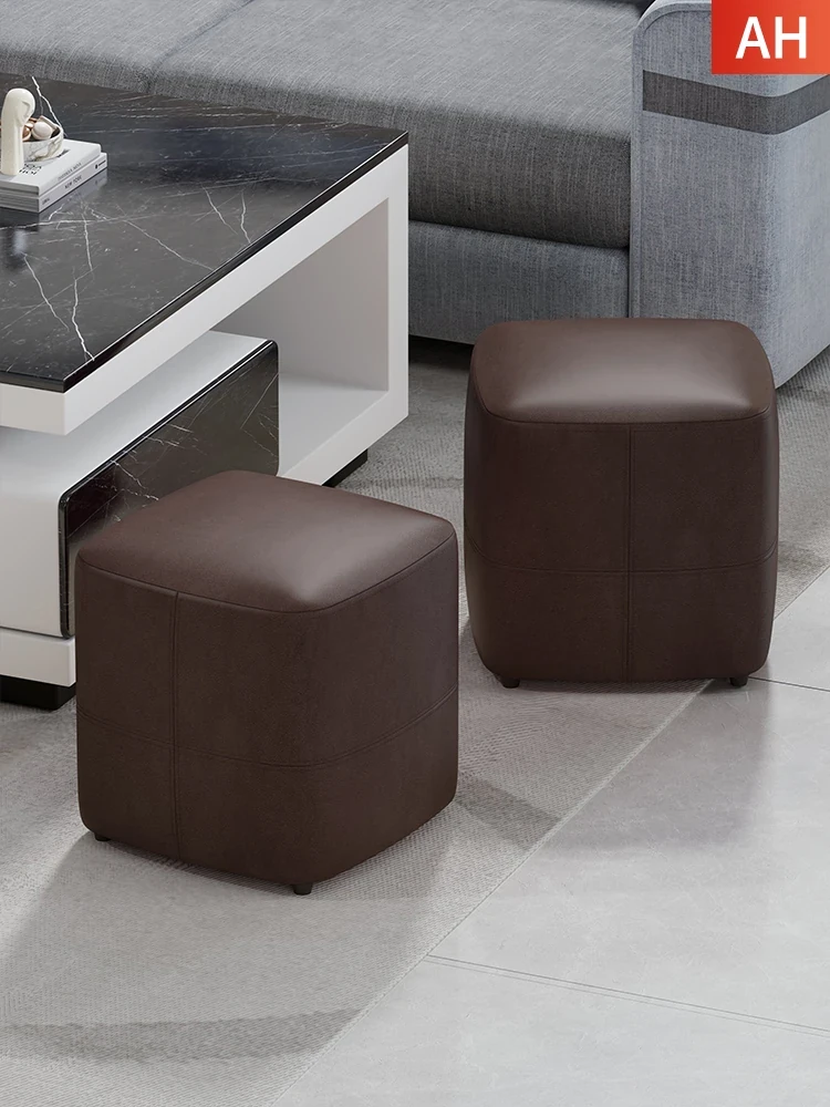 Stylish Home Stool - Solid Wood Soft-Padded Ottoman with Ultra-Fine Leather, Perfect for Living Room or Shoe Changing Area, Compact Square Design for Versatile Use