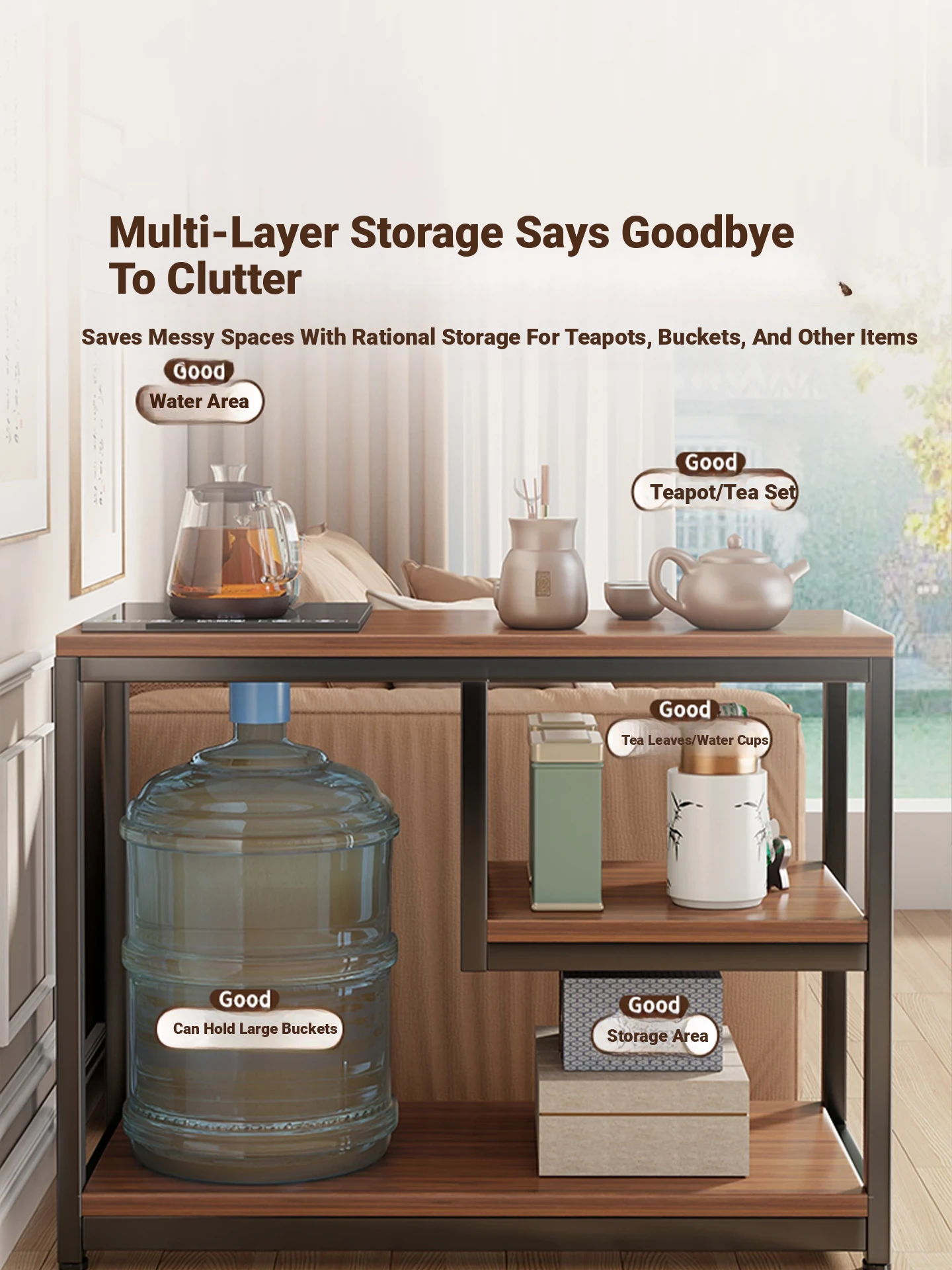 Portable Tea Rack with Storage for Balcony - Mobile Tea Table, Sofa Tea Table with Integrated Water Kettle and Bucket Stand, Perfect for Home Use