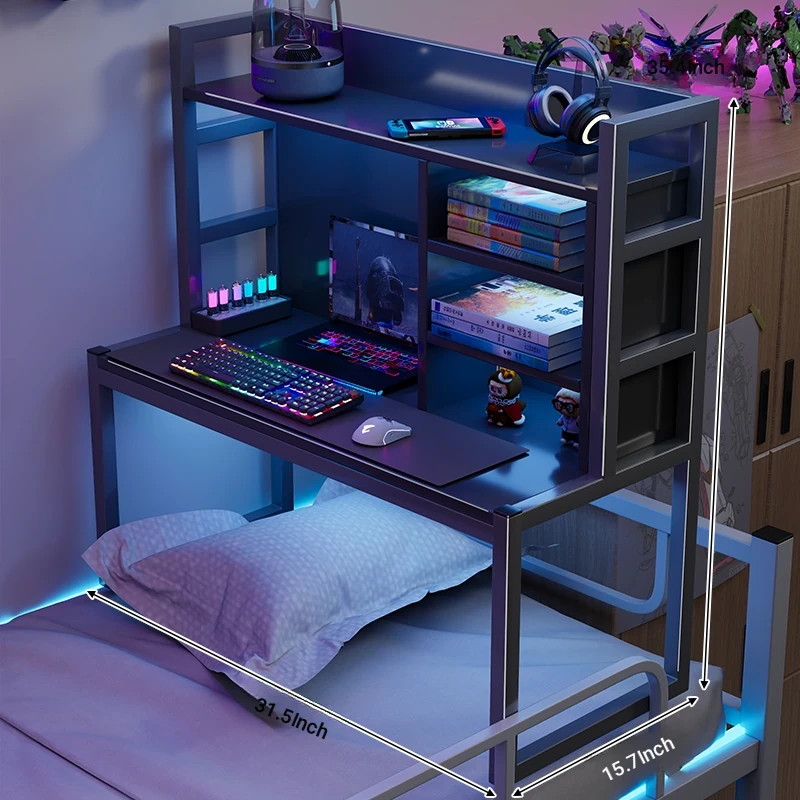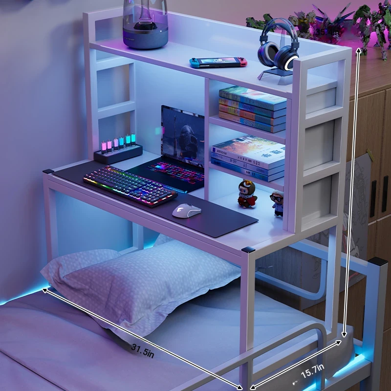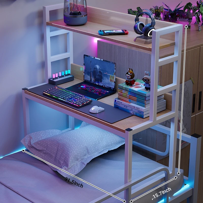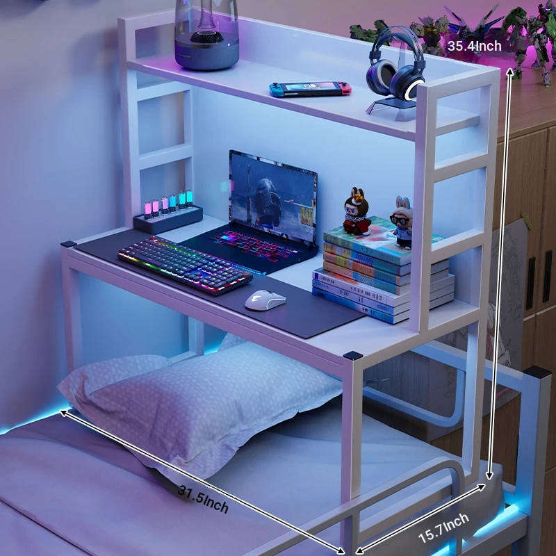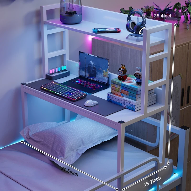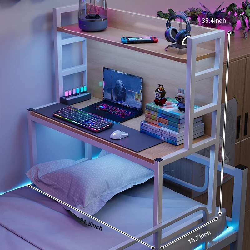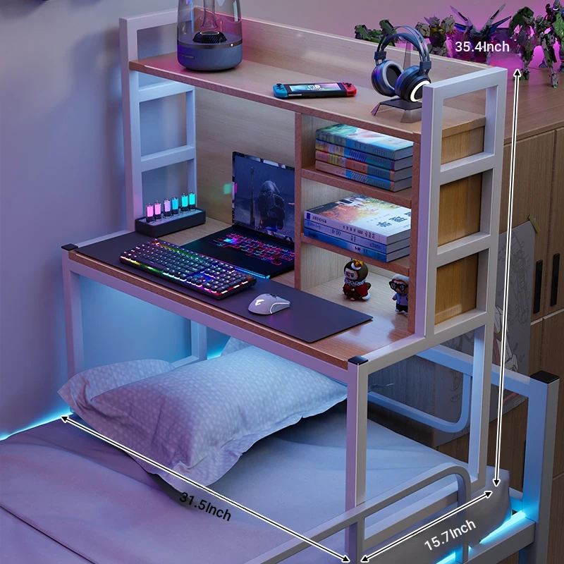 Loft Bed Desk for Students - Space-Saving Study Table with Storage Shelf for Dorm Rooms, Perfect for Gaming and Workstation Needs