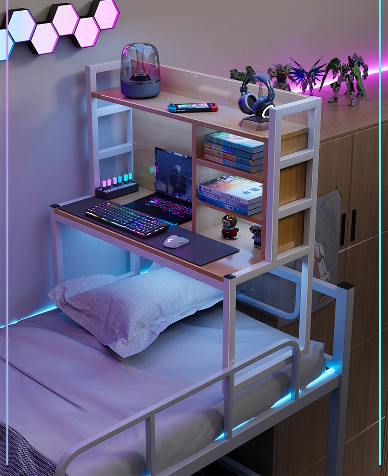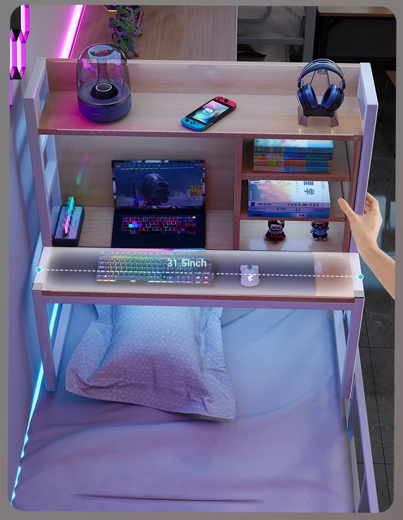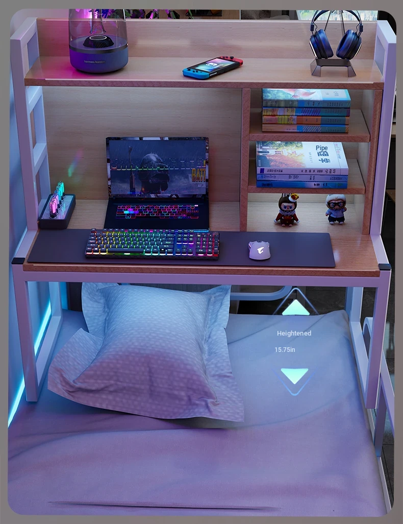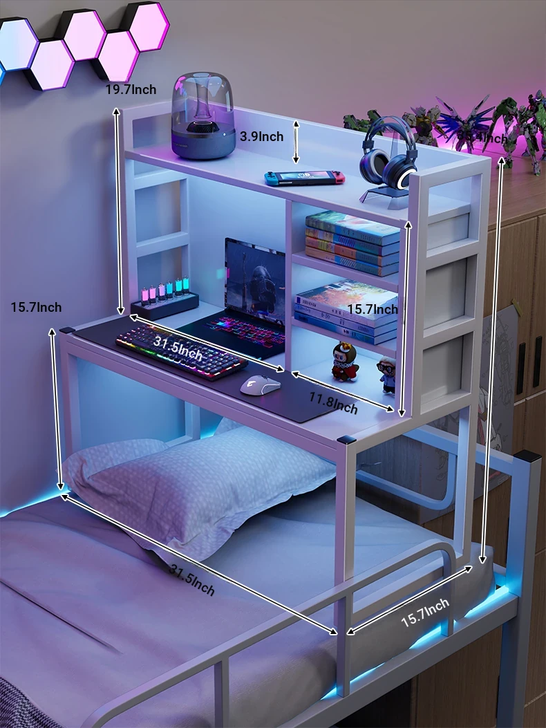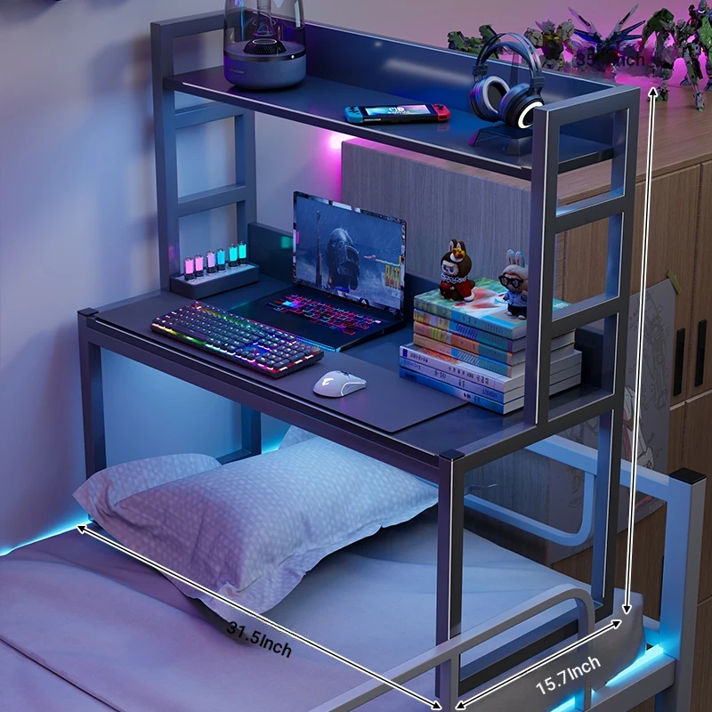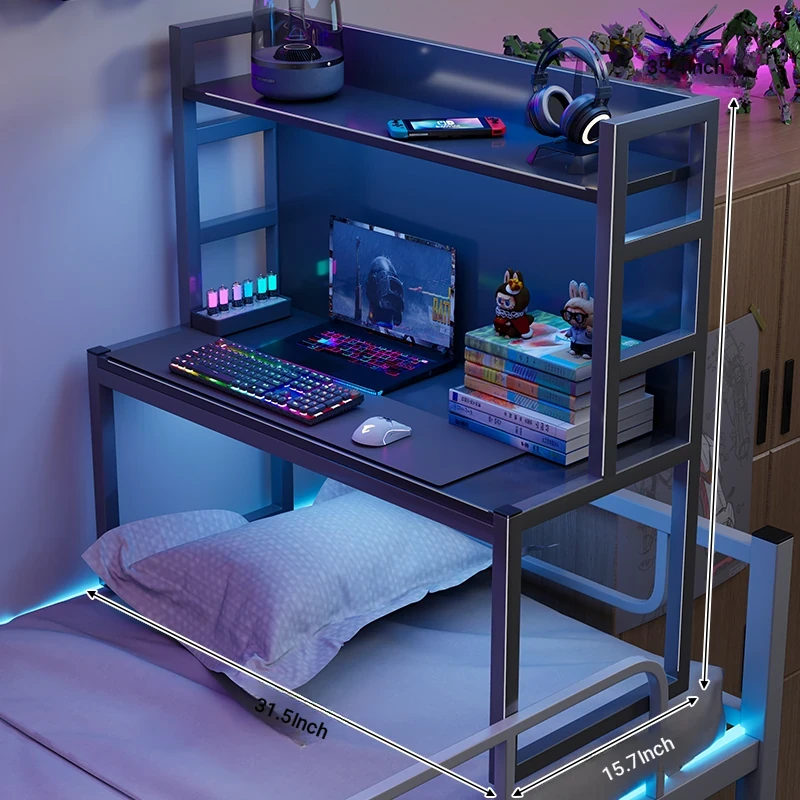Loft Bed Desk for Students - Space-Saving Study Table with Storage Shelf for Dorm Rooms, Perfect for Gaming and Workstation Needs