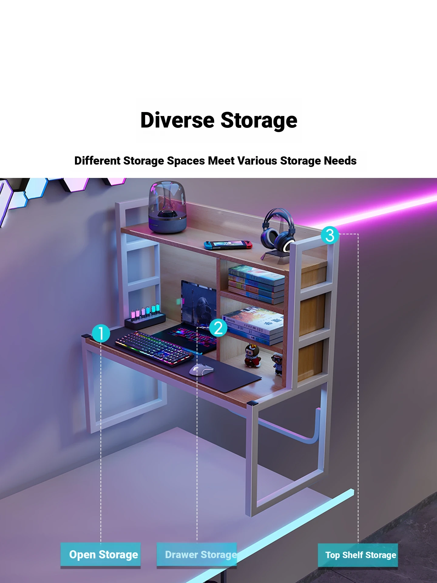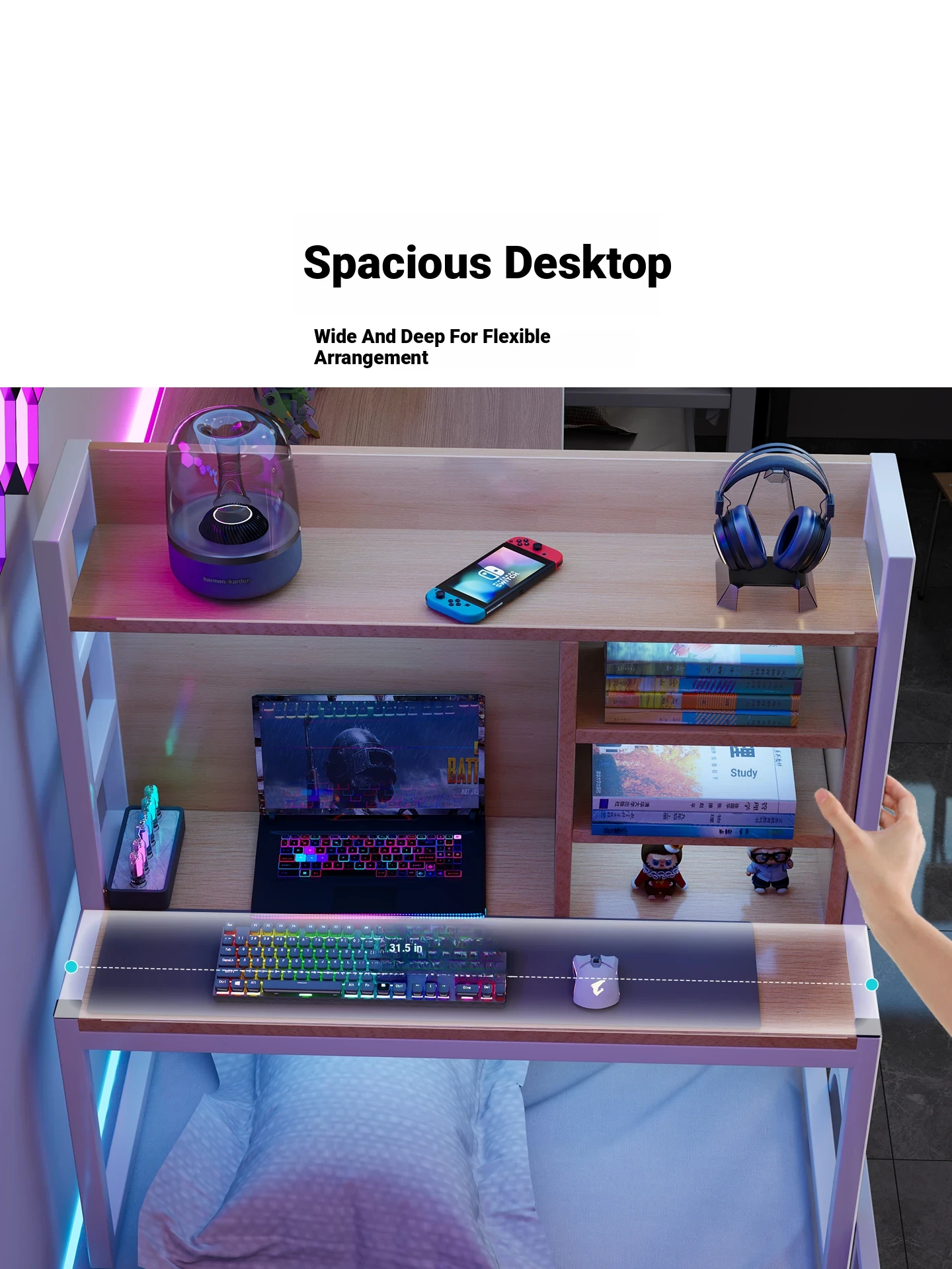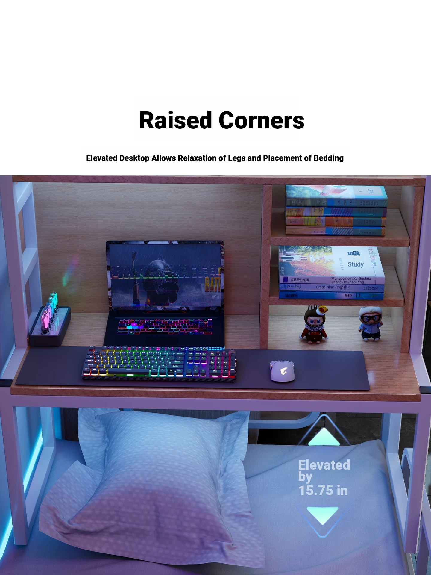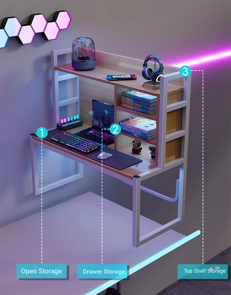 Loft Bed Desk for Students - Space-Saving Study Table with Storage Shelf for Dorm Rooms, Perfect for Gaming and Workstation Needs