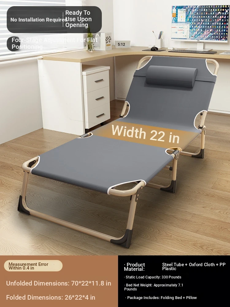 Portable Folding Single Bed for Adults - Perfect for Summer Home Use, Office Naps, and Camping. Multi-Functional Easy Recliner for Comfortable Rest Anytime, Anywhere!
