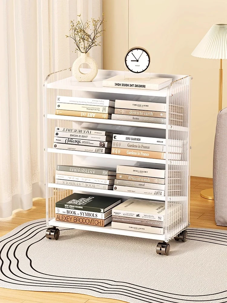 Children's Mobile Bookshelf Cart with Wheels - Multi-Tier Acrylic Reading Stand for Study Desk, Ideal for Young Readers and Organizing Books