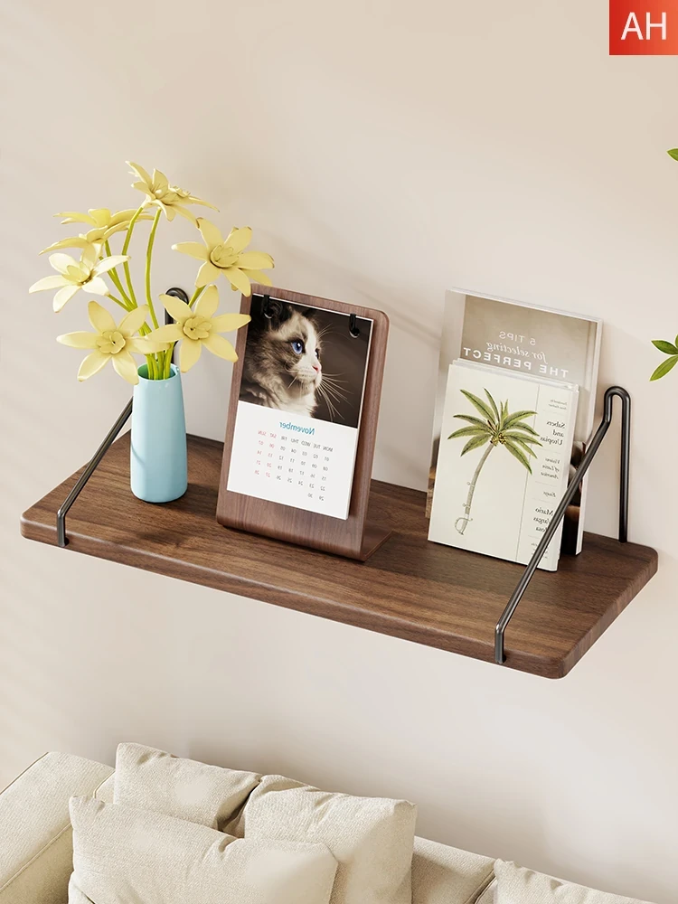 Solid Wood Wall-Mounted Bookshelf - Perfect for Home Theaters and Living Room Sofa Walls, Sturdy Hanging Shelf for Stylish Organization and Display.