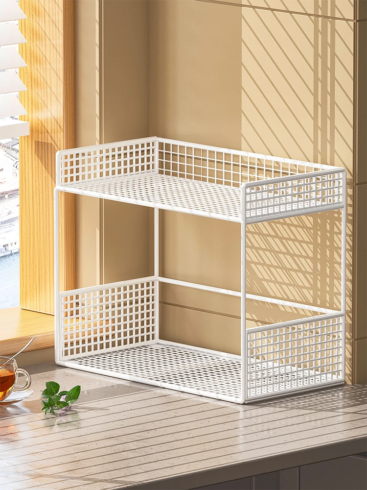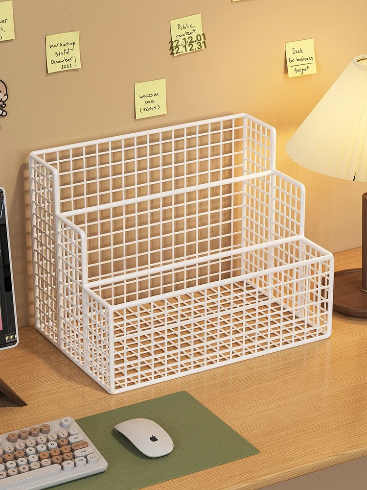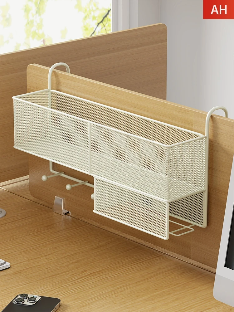 Wall-Mounted Office Storage Shelf - Stylish Iron Desk Organizer with Hanging Baskets for Efficient Workspace Organization