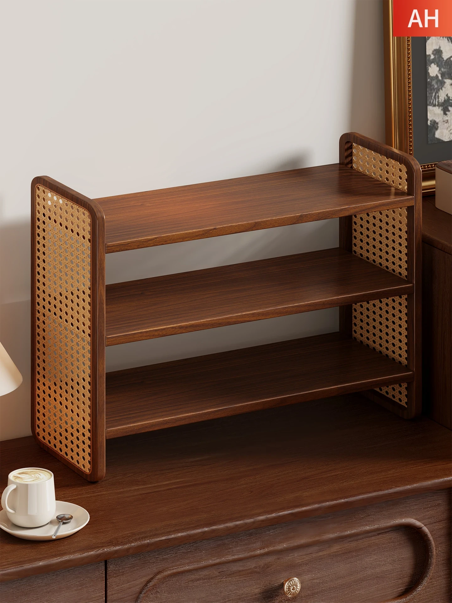 Solid Wood Bookshelf - Stylish Desktop Storage Rack for Living Room, Woven Design Study Desk Organizer, Multi-Layer Small Bookshelf for Office & Bedroom, Perfect for Efficient Space Utilization and Aesthetics.
