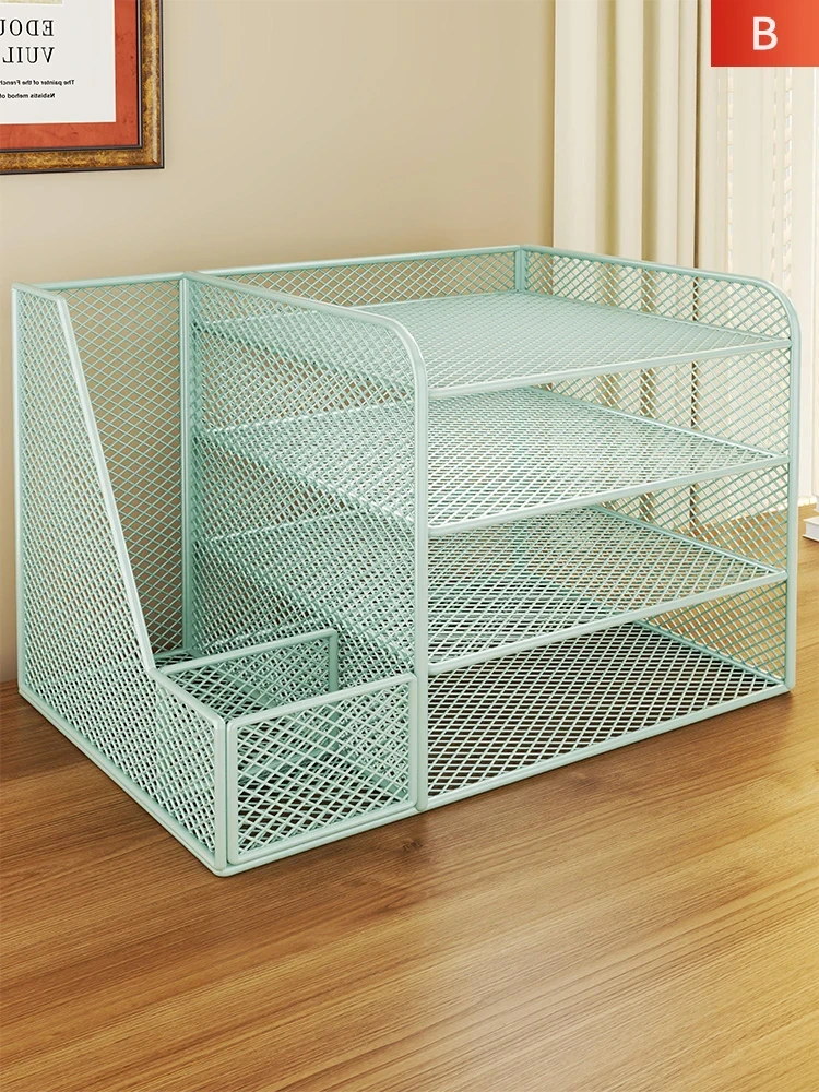 Multifunctional Desktop File Organizer - Multi-layer Bookshelf Storage Rack for Office and Home Use, Ideal for Document and Material Management