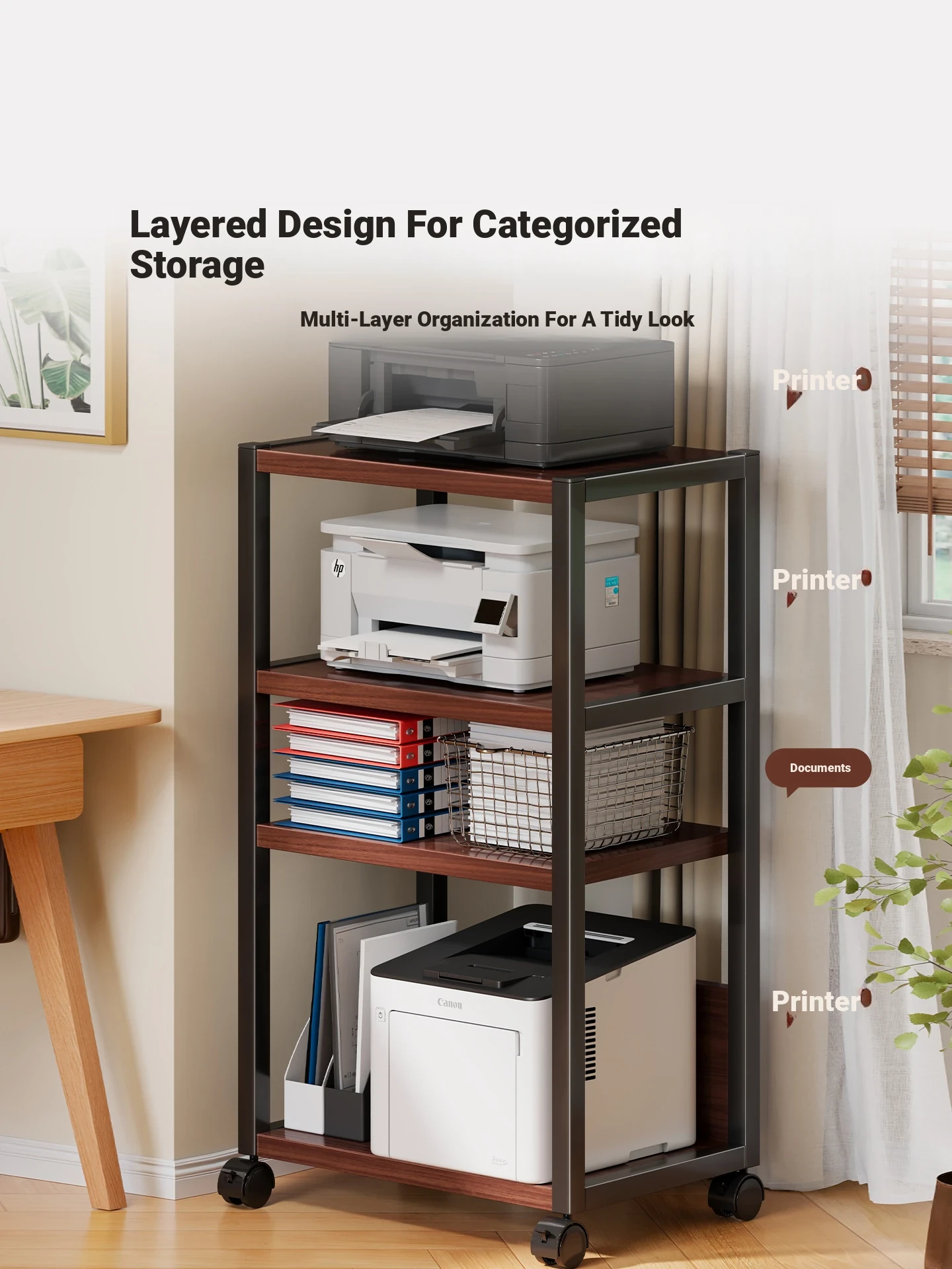 Mobile Printer Stand with Wheels - Multi-Layer Rolling Cart for Office Use, Perfect for Desk Side Storage and Book Display