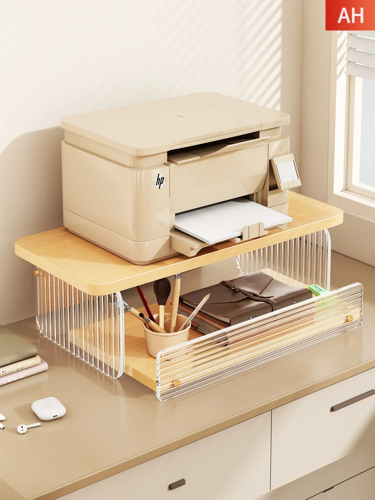 Dual-Layer Printer Stand for Office Desk - Elevated Desktop Organizer for Small Printers and Copiers, Space-Saving Design for Efficient Workspace Management