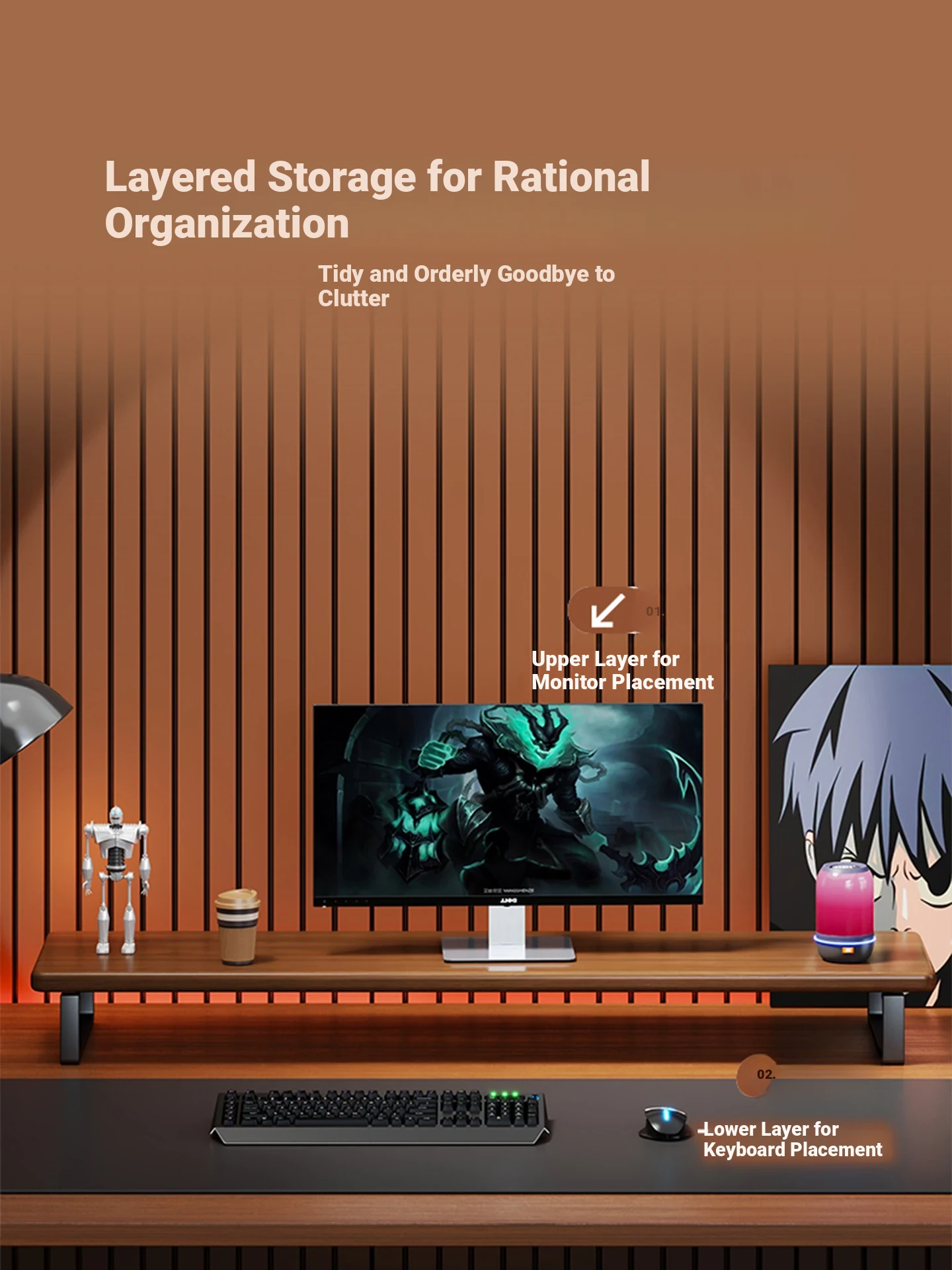 Elevated Computer Desk Stand - Monitor Riser with Storage Shelf for Desktop, Keyboard Organizer and Height Adjustable Base, Perfect for Home Office Setup