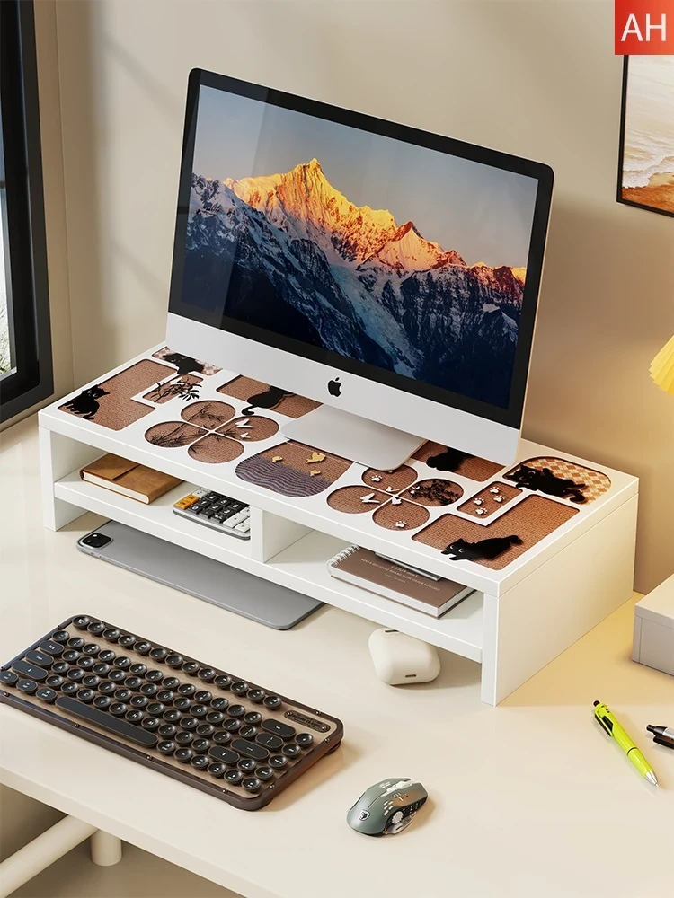 Adjustable Laptop Riser - Dual-Layer Wooden Monitor Stand for Office and Dorm, Elevate Your Screen for Better Ergonomics and Comfort