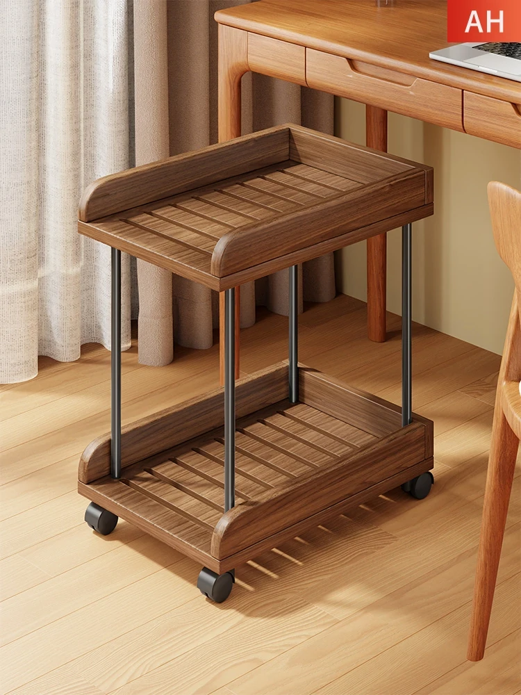 Mobile Solid Wood Bookshelf - Space-Saving Desk Side Storage Rack for Classroom and Students with Wheels - Ideal for Books and Stationery Organization