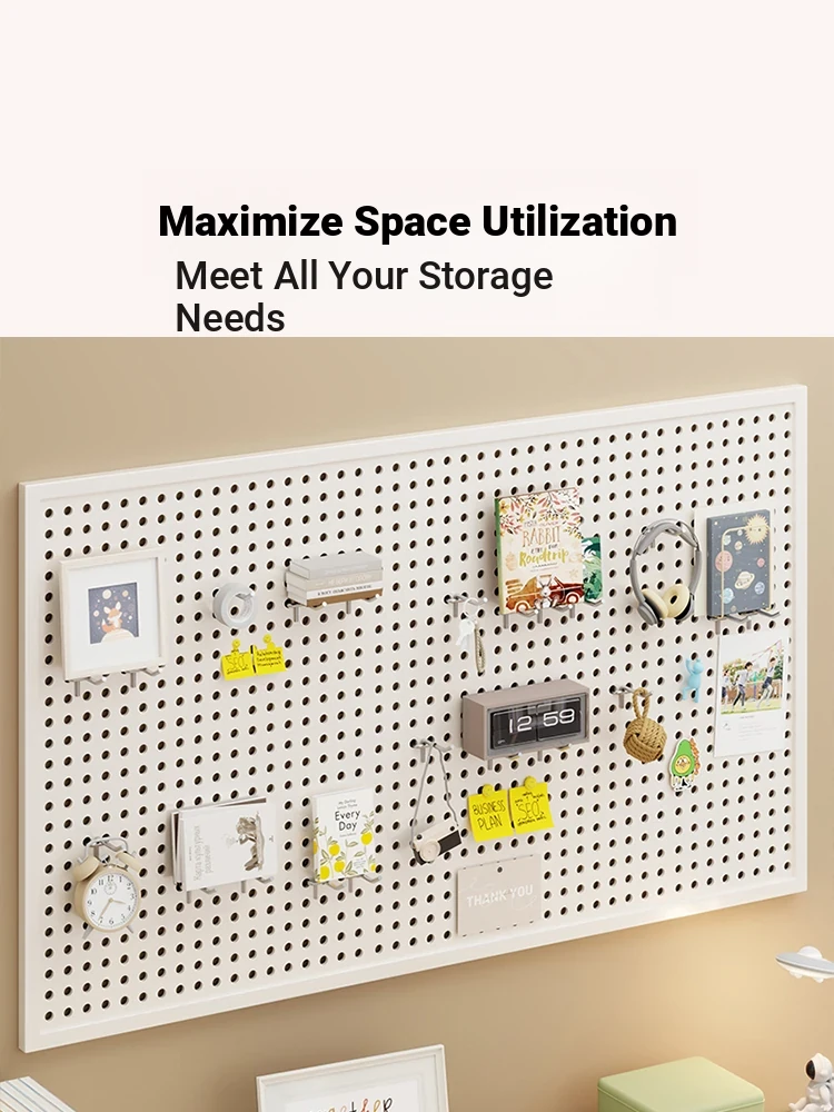 Kids' Wall-Mounted Pegboard Desk - No Drill Metal Storage Rack for Dorms, Perfect for Organizing and Displaying Accessories, Stylish and Functional Design!