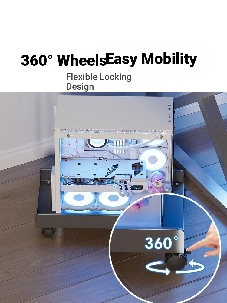 Versatile Computer Tower Stand with Wheels - Mobile Desktop Support Rack for Home Office, Convenient Under-Desk Storage Solution