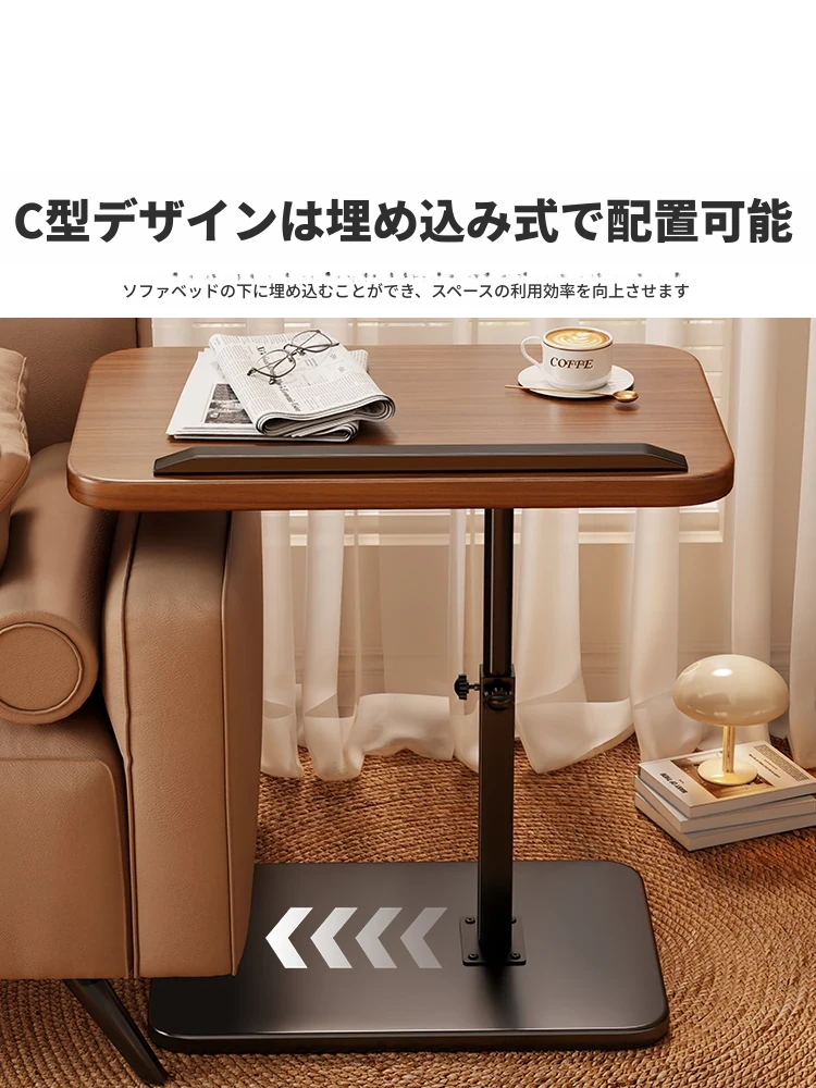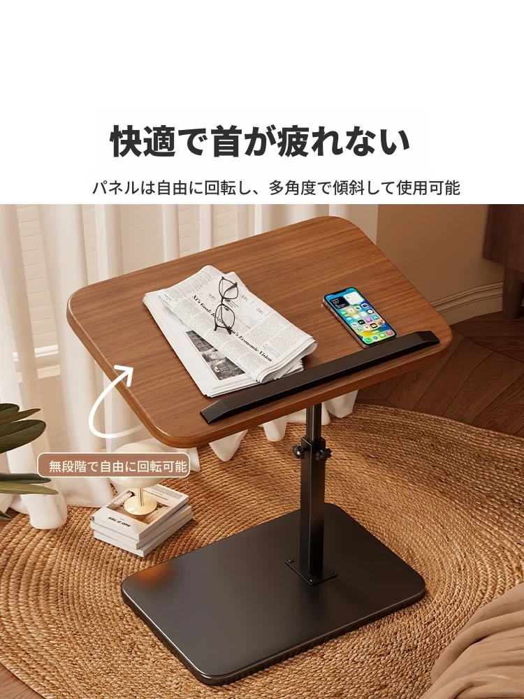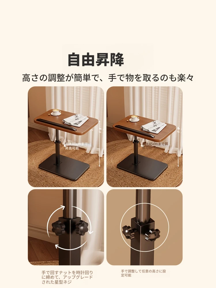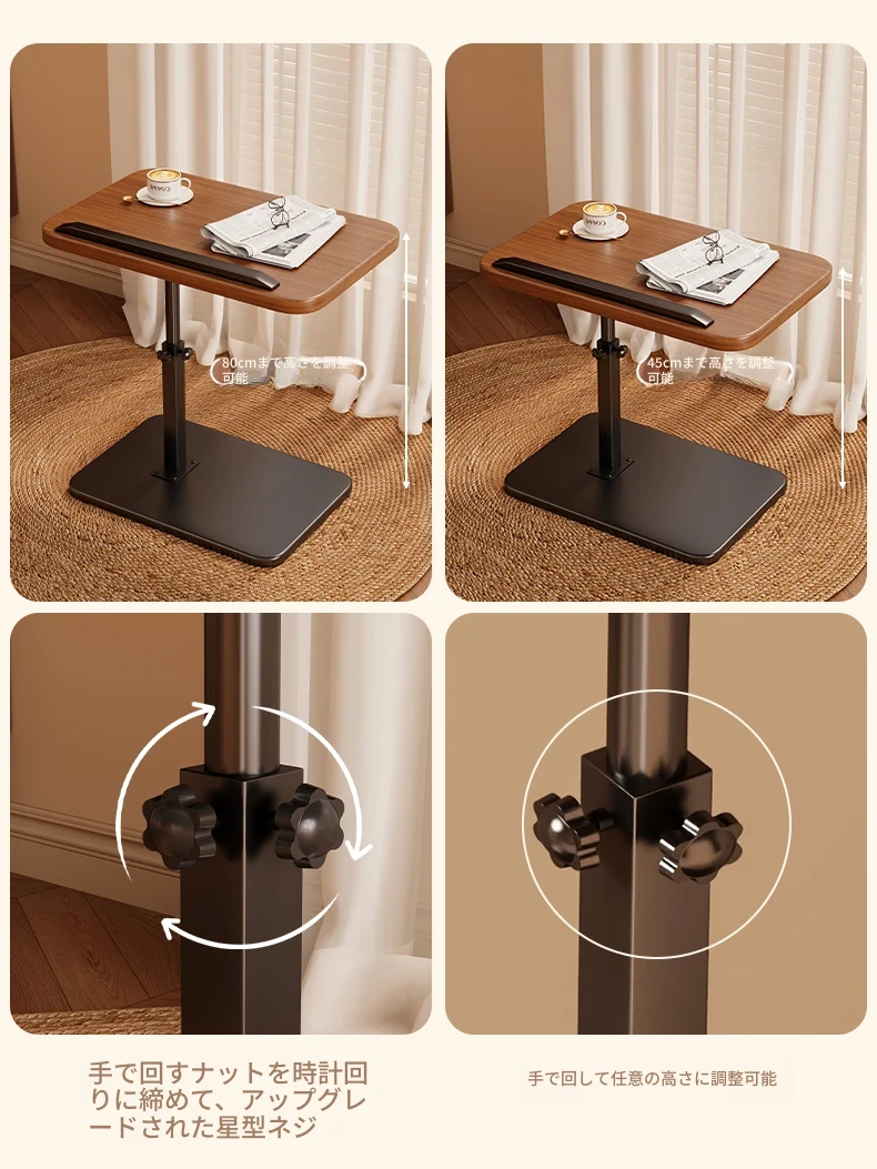 昇降機能付きサイドテーブル|リビングやバルコニーに最適なコンパクトデザイン|寝室やベッドサイドでも使える便利なパソコンデスク|おしゃれで機能的なティーテーブルをお楽しみください!
