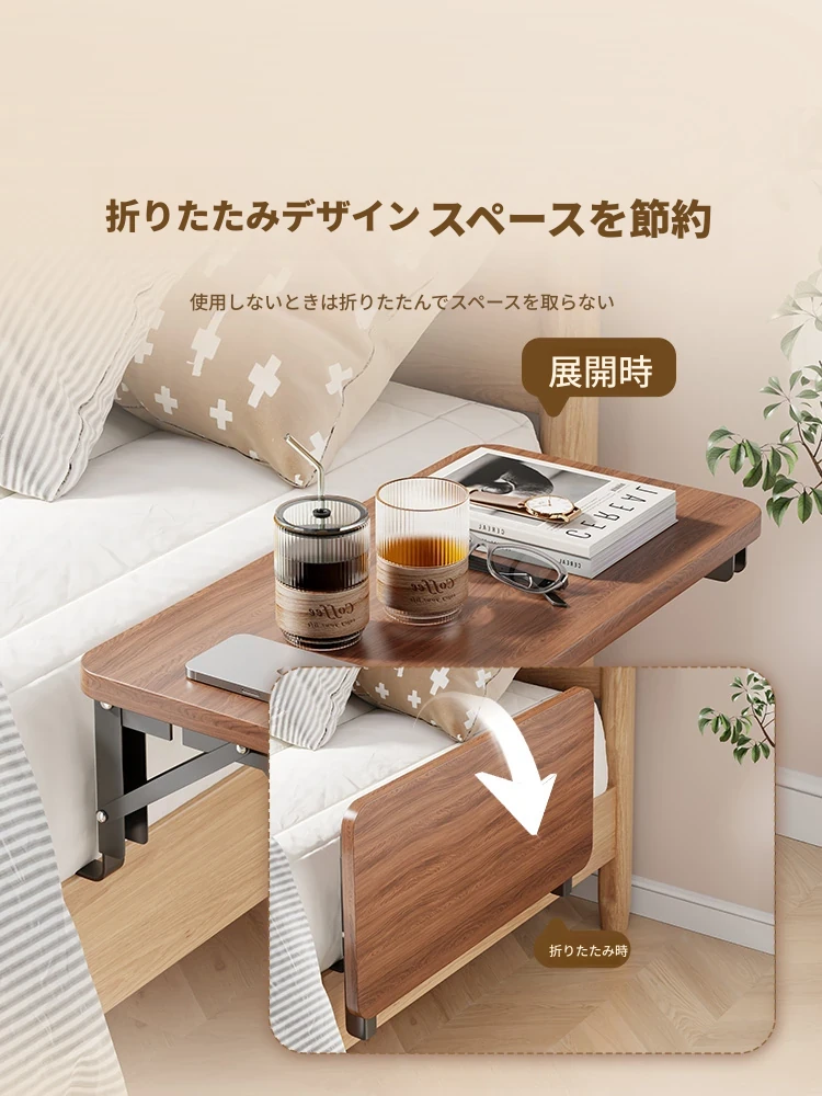 大学生必見!折りたたみ式ベッドサイド収納ラック - 上のベッドの横にぴったり!本やお菓子をすっきり収納して、限られたスペースを有効活用。快適な学習環境をサポートします!