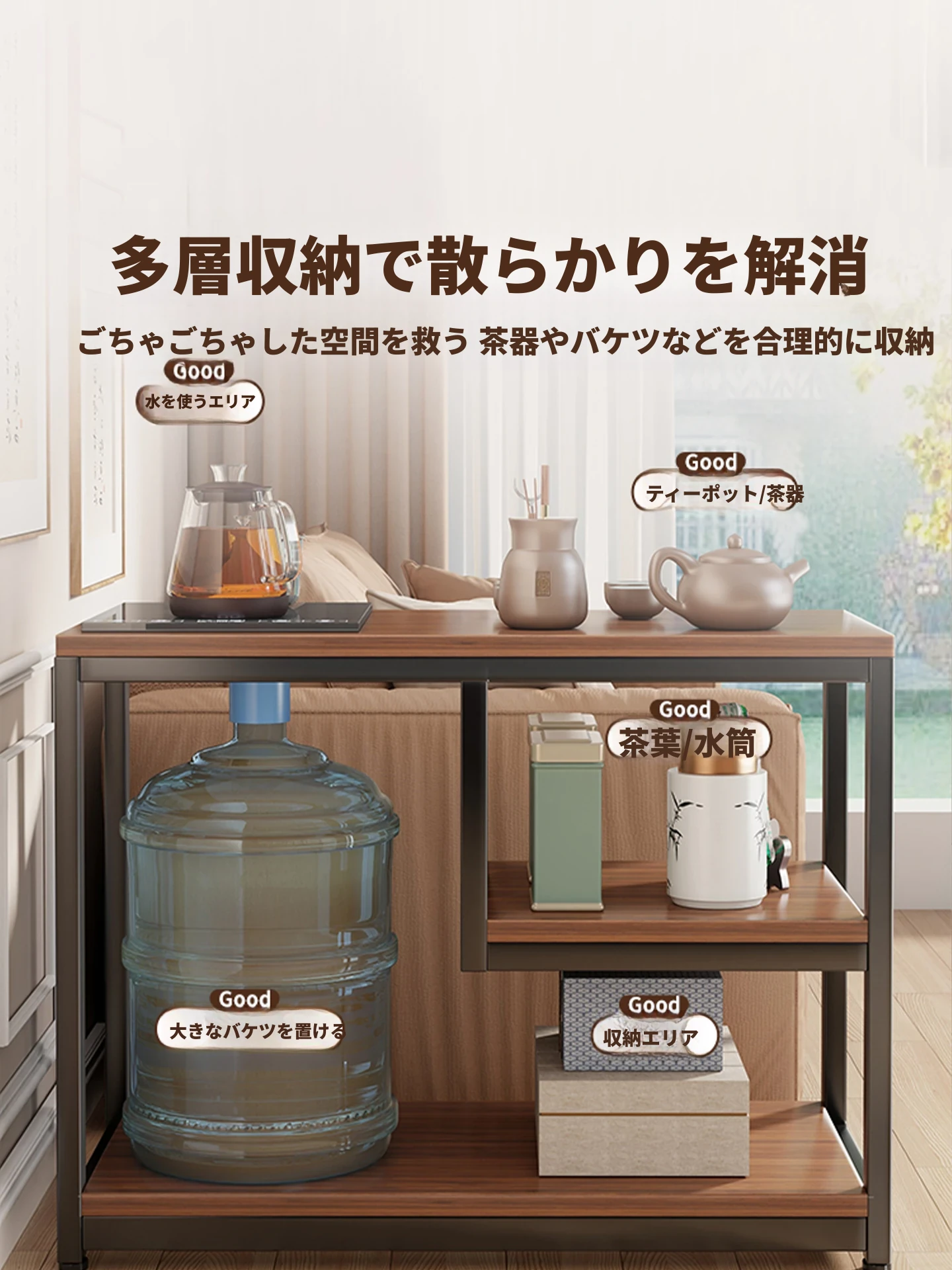 移動式ティーキャビネット - リビングにぴったりの小さな茶台!ソファの横に最適なサイドテーブル、収納もできる便利なキャスター付きラック。スタイリッシュで実用的なデザインで、あなたの空間をおしゃれに演出します!