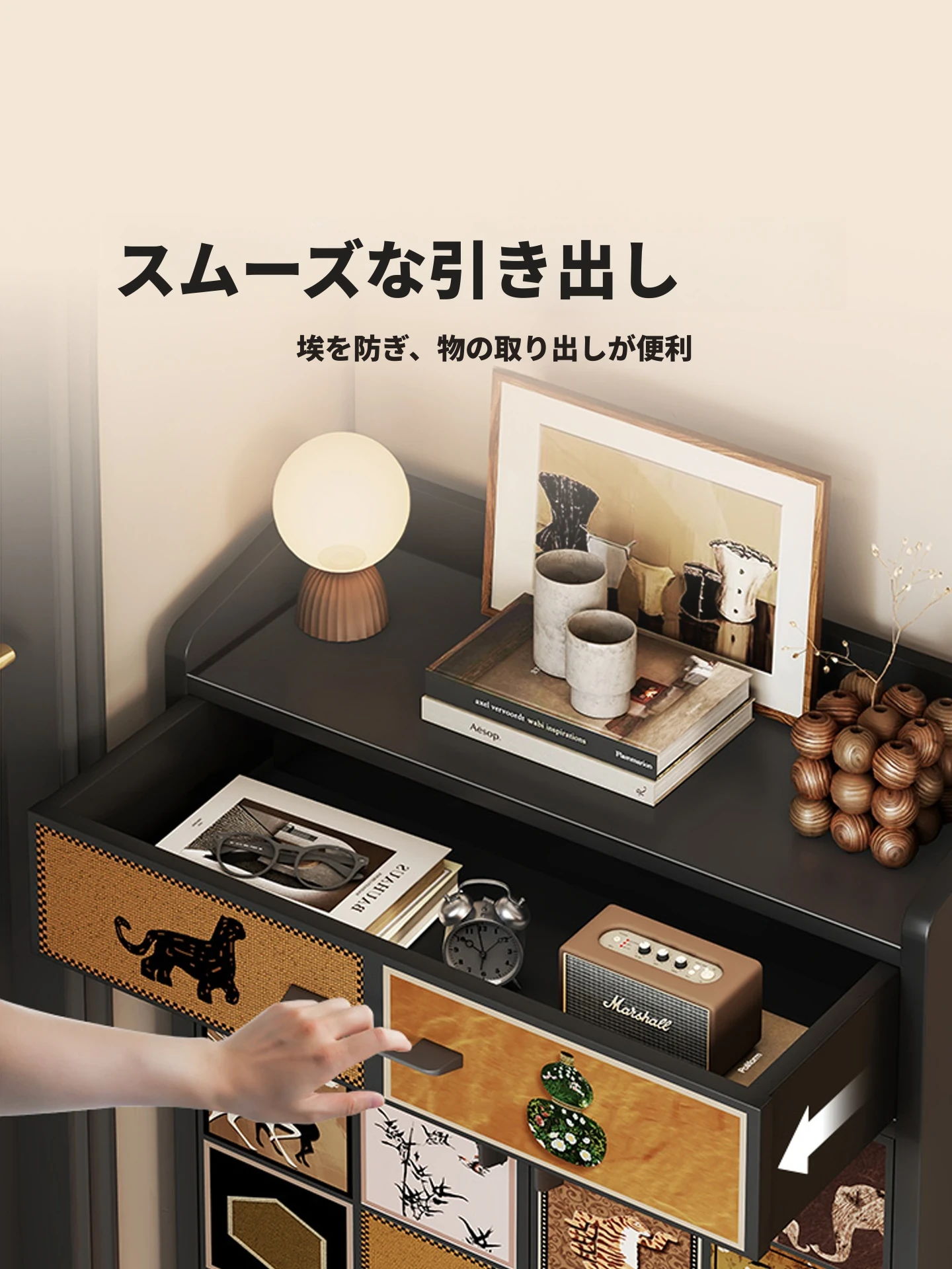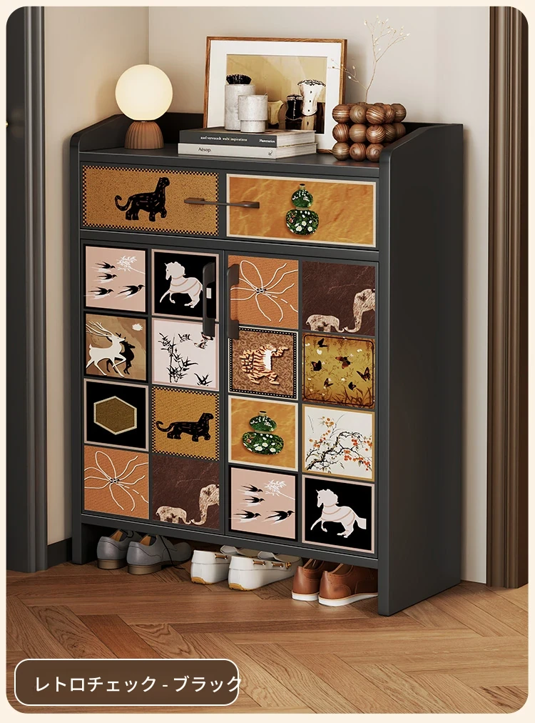 レトロチェック⭐ブラック【ハイタイプ-2ドア1引き出し】