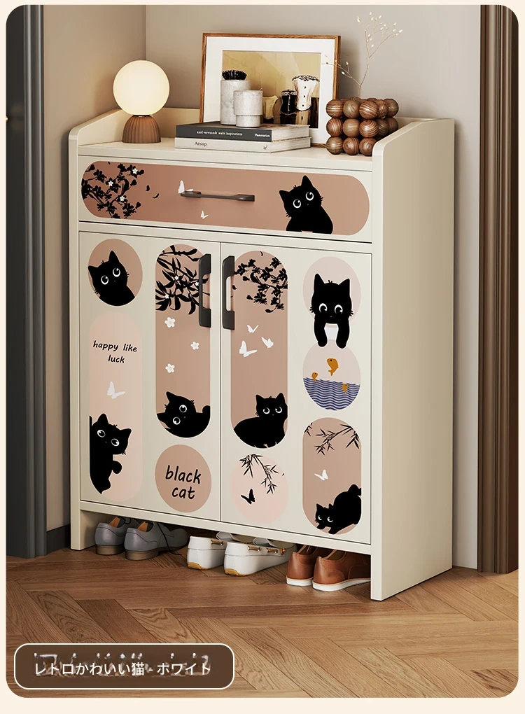 レトロかわいい猫⭐ホワイト【ハイタイプ-2ドア1引き出し】