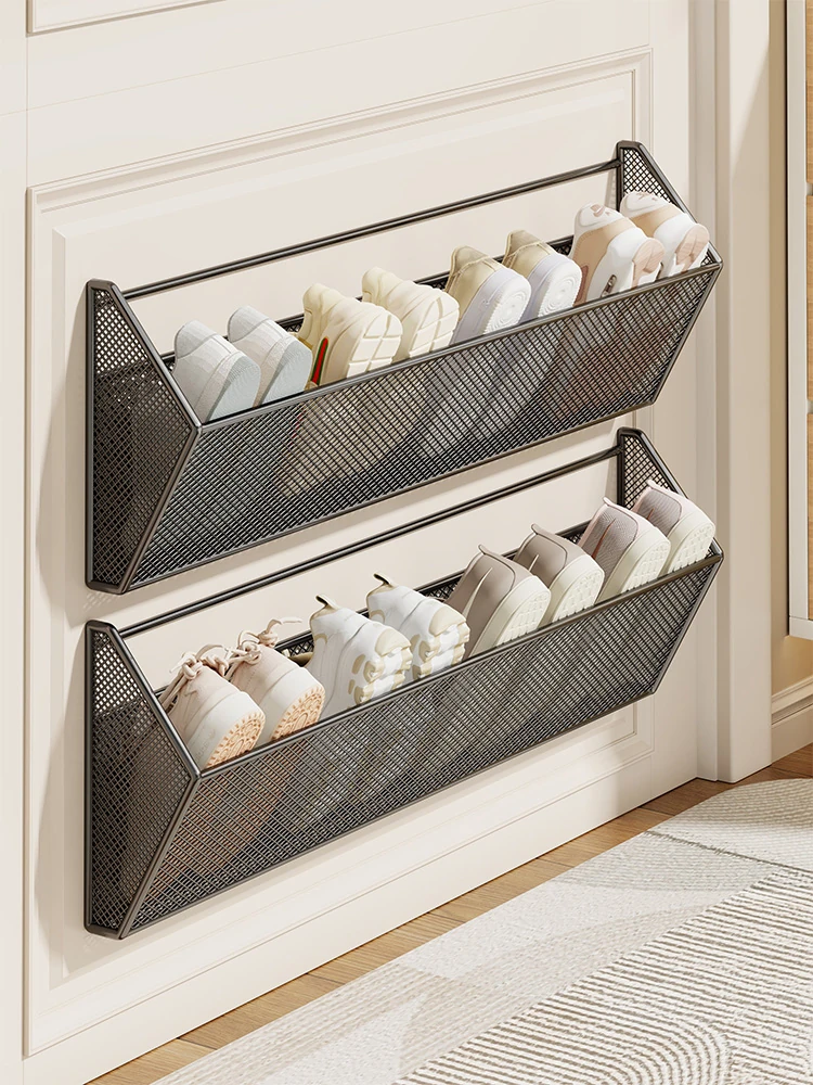 2024年新款!家庭用玄関にぴったりなスリムな多層シューラック。壁掛け式のアイアンシューラックで、靴の収納が簡単に!スペースを有効活用して、玄関をスッキリ整えましょう。