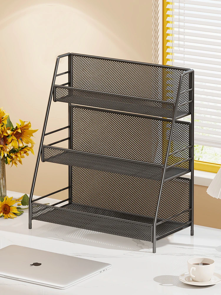 デスク上の整理整頓に最適!多層構造の簡易収納ラック - オフィス用書籍&カップスタンド。コンパクトでスタイリッシュなデザイン、あなたの作業環境を美しく整えます!