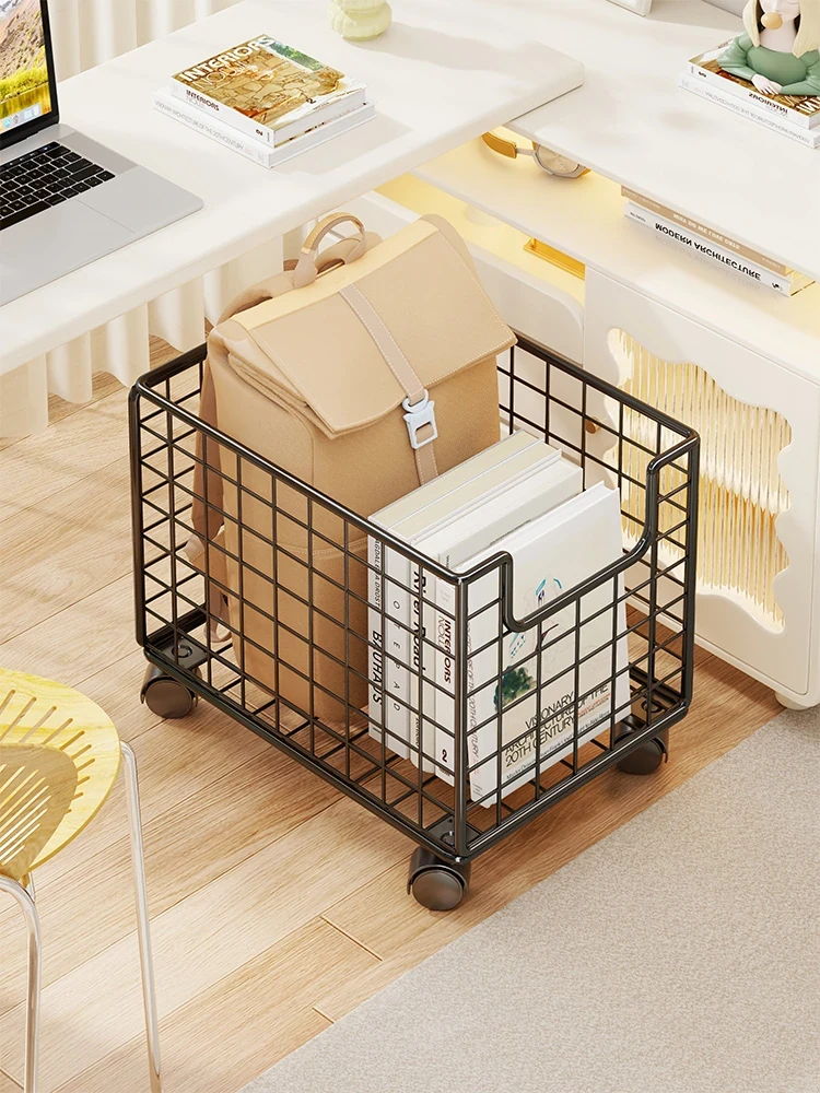 子供用移動式書架・収納ラック - 家庭にぴったり!デスク下に収まるコンパクト設計で、書籍やバッグをスマートに整理。キャスター付きで簡単に移動可能!お子様の学習環境を整えましょう。