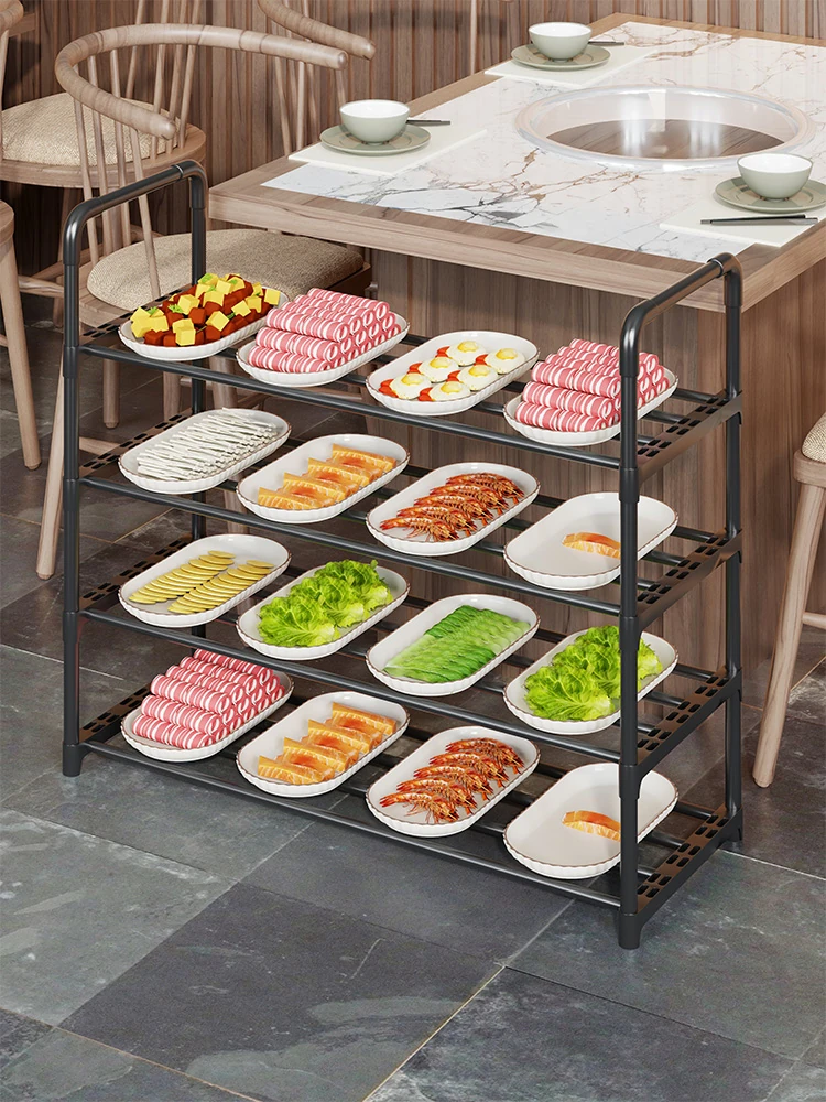商業用火鍋菜台 - 層状デザインで、串焼きや焼肉の食材を美しくディスプレイ。レストランテーブルの横で、効率的に食材を提供!おしゃれで使いやすい、料理のクオリティを引き立てる必須アイテム!