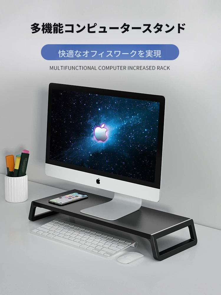 デスクトップモニター台座 – シンプルでモダンなデザイン、オフィスにぴったり!パソコンを快適に使える高さ調節可能なスタンドで、デスクスペースを有効活用。整理整頓も簡単な便利アイテム!