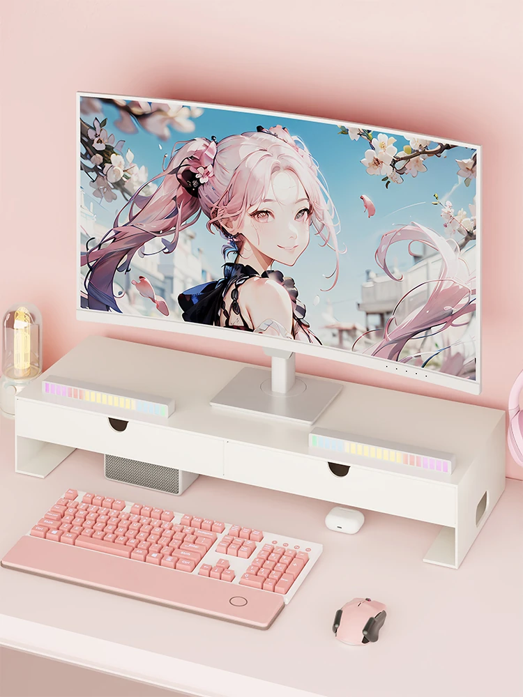 デスク用モニター台、引き出し付きで収納力抜群!オフィスをすっきり整理し、快適な作業環境を実現するディスプレイスタンド。高さ調整可能で、目線を楽に保ちます。あなたの作業効率をアップ!