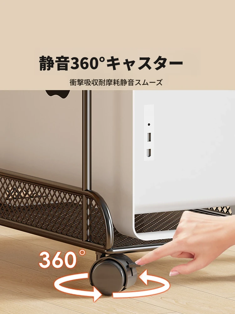オフィス用デスクトップPCスタンド - 滑車付きで高さ調整可能!家庭用デスク下に最適なパソコンケース置き場。整理整頓と通気性を両立し、作業環境を快適にします!