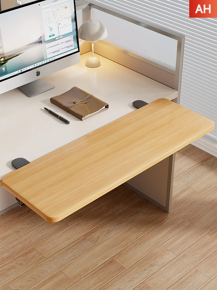 折りたたみ式の実木デスク拡張ボード - スペースを有効活用!穴を開けずに取り付け可能なアームサポート付きのオフィスデスク用棚。快適な作業環境を実現します!