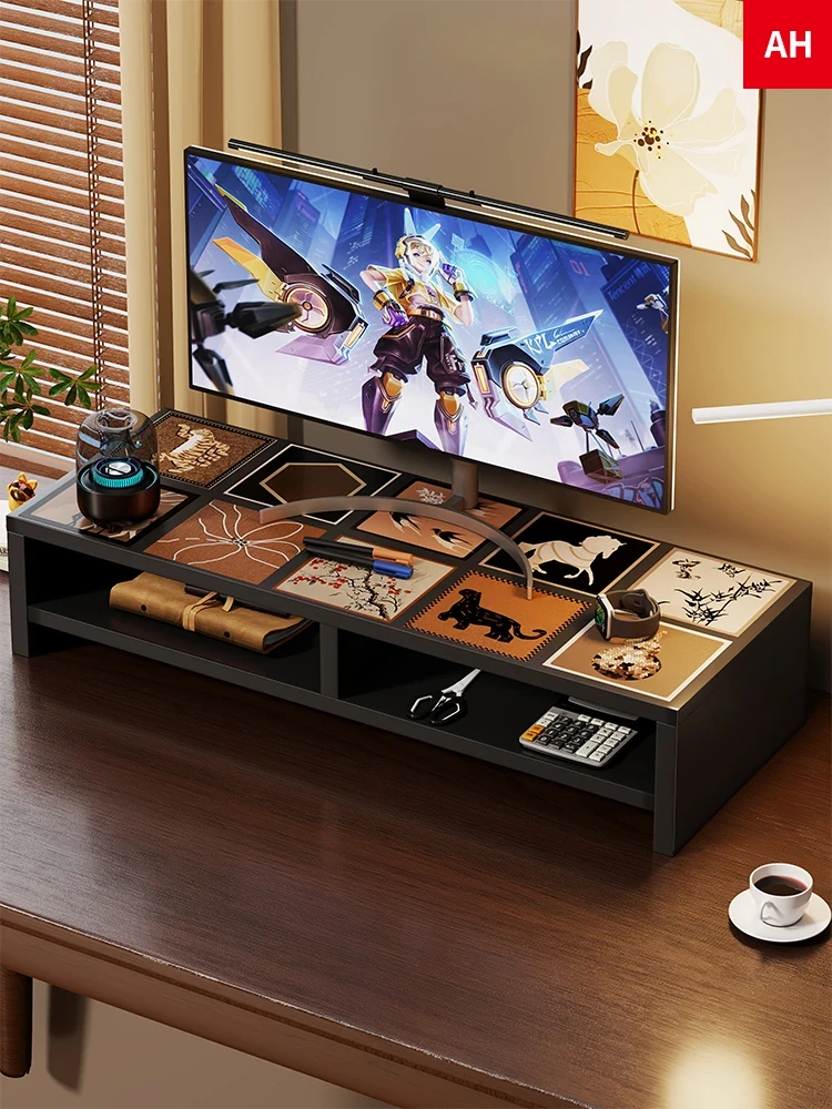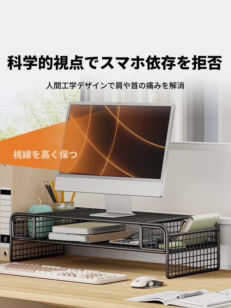 デスクトップモニター用スタンド - ノートパソコンを快適に冷却!オフィス環境を整える高さ調整可能なスタンド。作業効率をアップし、スペースを有効活用する理想のアイテムです。