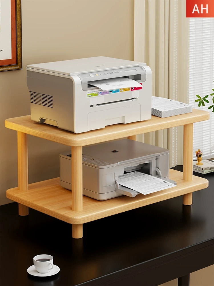 木製シンプルプリンタースタンド|オフィス用多機能2段収納ラック|コピー機や文房具の整理に最適!スペースを有効活用して、快適な作業環境を実現します。