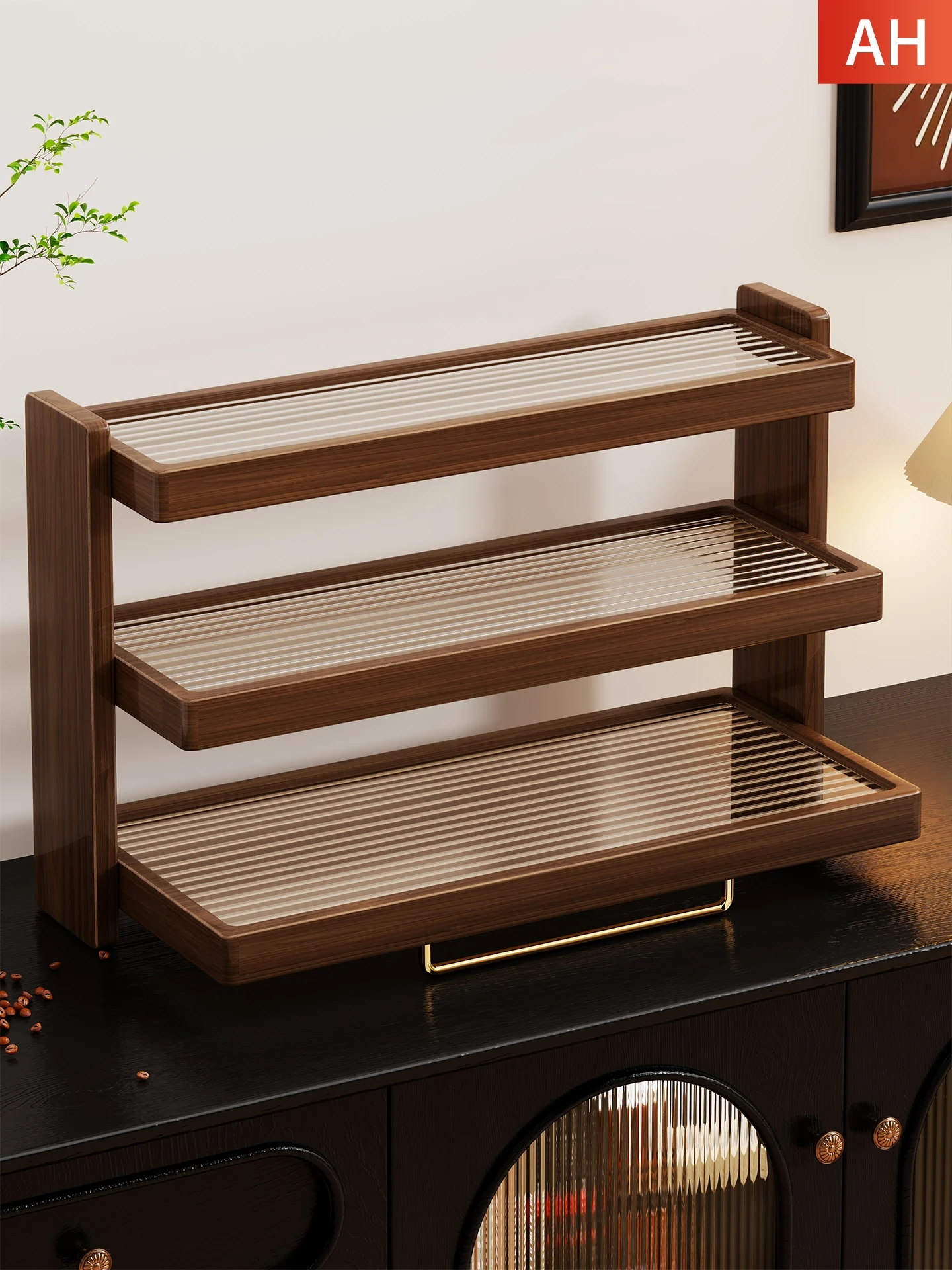 天然木製カップ収納ラック - デスクトップ整理整頓に最適!コーヒーカップやティーセットを美しくディスプレイ。省スペースでスタイリッシュなデザイン、小型カップラックであなたのテーブルをおしゃれに演出します。