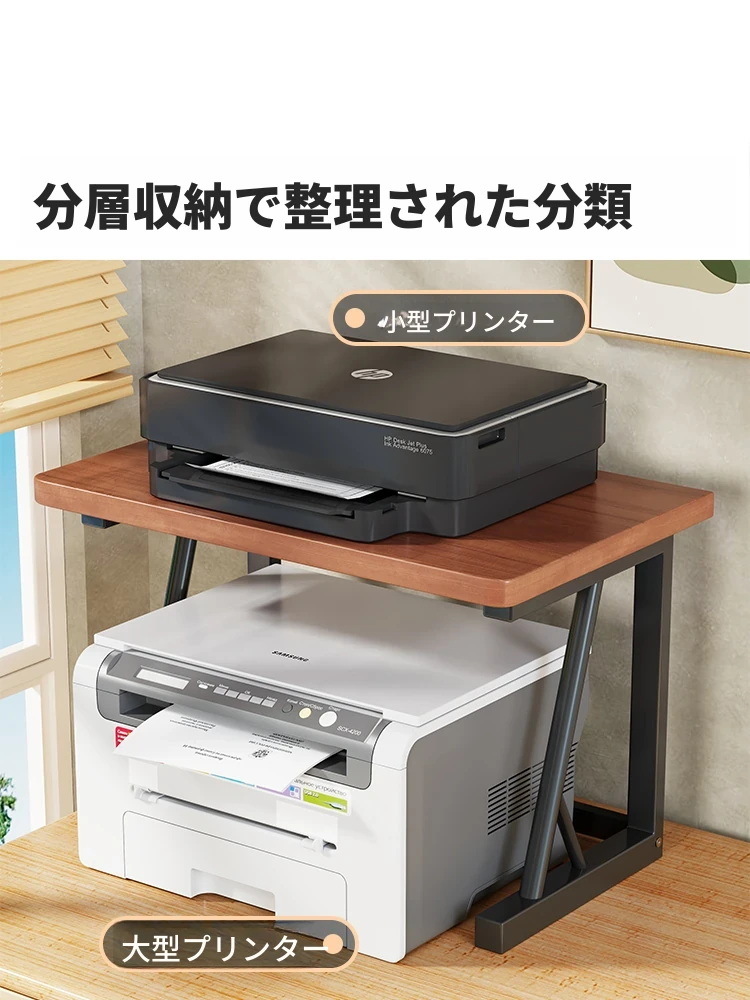 デスクトップ用小型二段印刷機スタンド - 多機能オフィス収納ラックで、プリンターやコピー機をすっきり整理!あなたの作業空間を効率的にアップグレードしましょう!