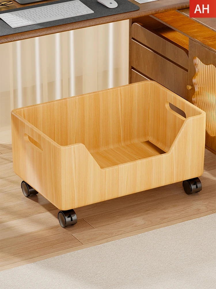 実木製の書籍収納ボックス - 移動便利なキャスター付き!学生や高校の教室に最適な書籍整理ボックス。おしゃれで実用的な収納が実現!